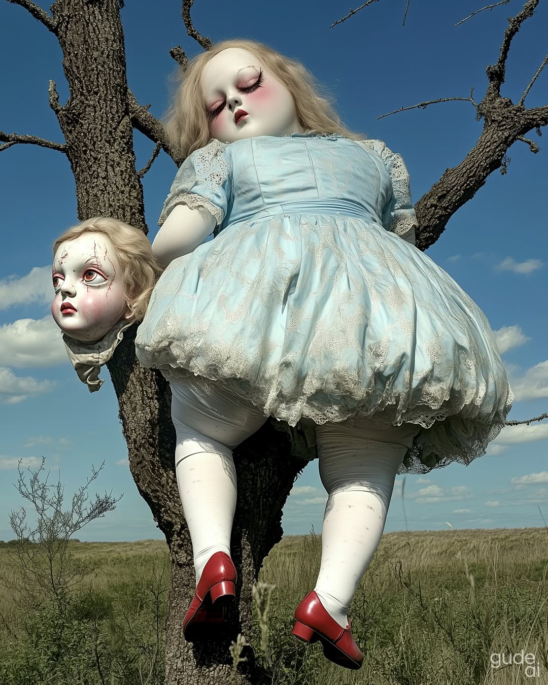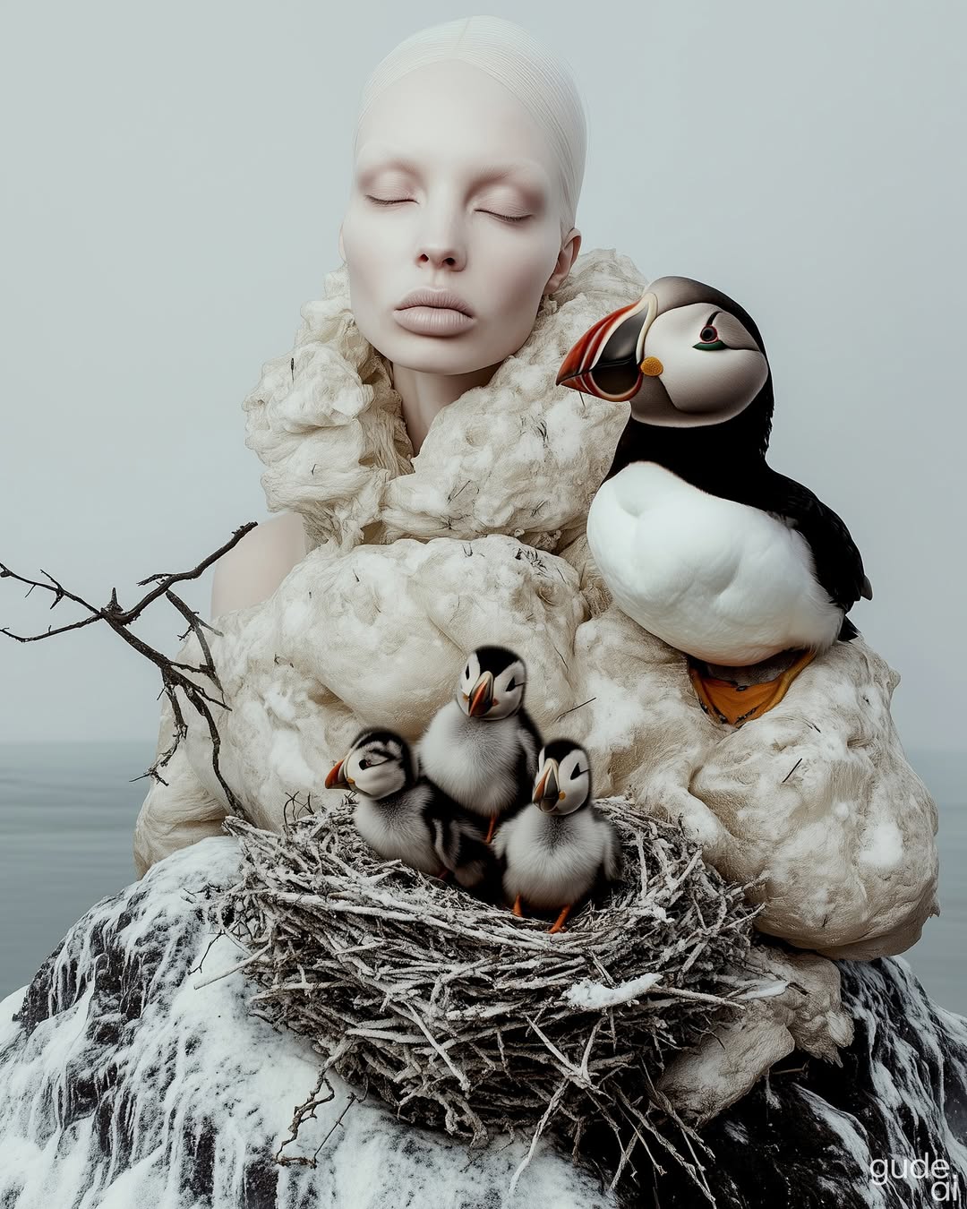 Camilla Gude – @gude_ai is a UK based AI artist and digital creator crafting high-concept, “arty-farty” worlds with a feminine edge and a dark sense of humor. Her work slips between beauty and unease — photorealistic, slightly unhinged, occasionally witty, and never quite behaving itself. Expect the unexpected with always Gude.