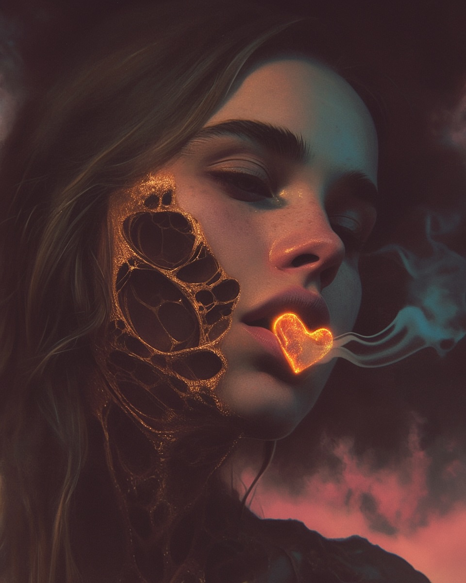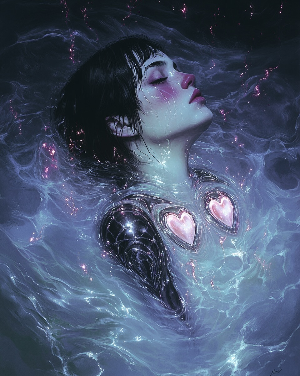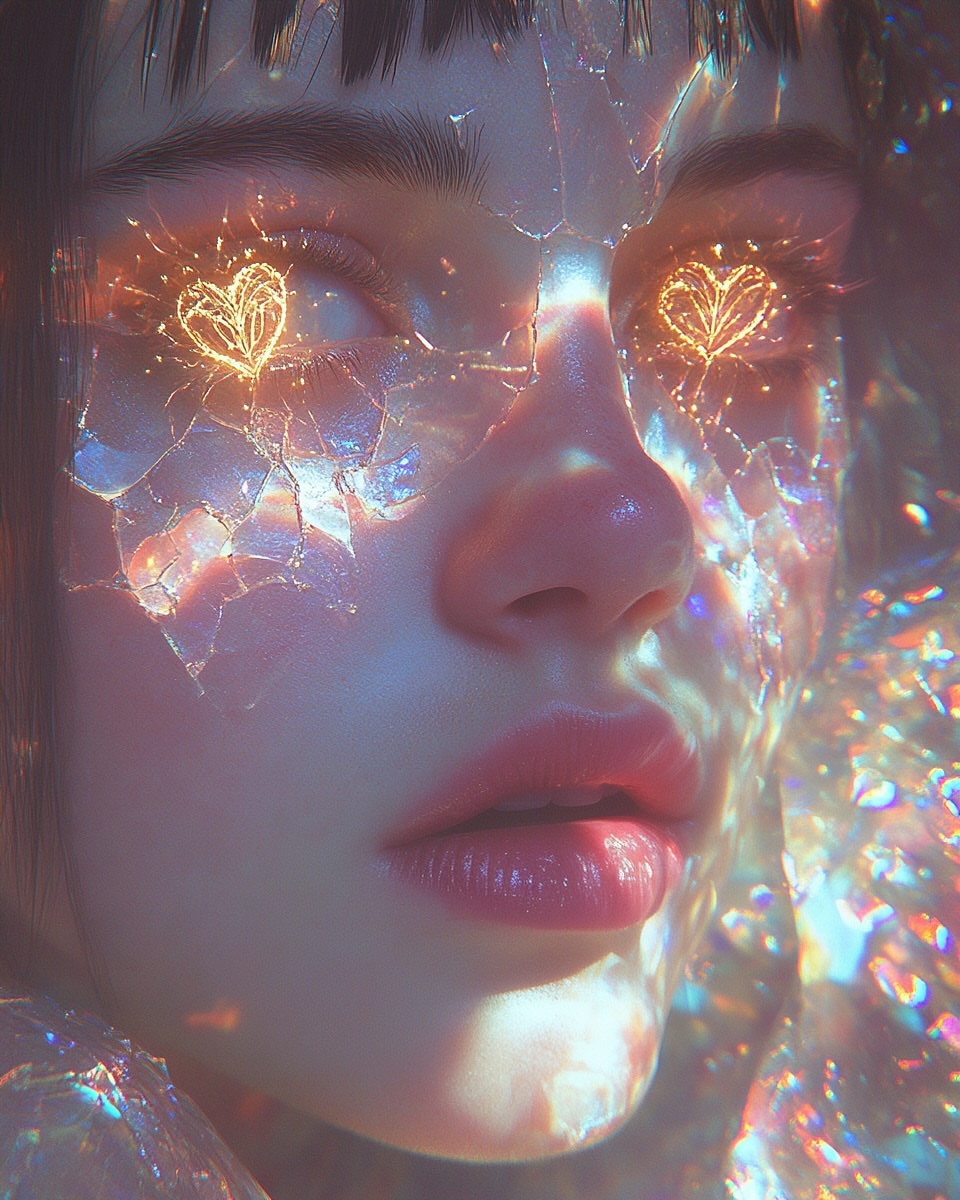 Glowing heart motifs, celestial imagery, and soft, mysterious lighting give each piece a sense of magic, like stepping into a universe where emotions manifest visually. There’s an enchanting contrast between light and shadow, warmth and melancholy, that makes the work feel immersive and emotionally resonant to me.