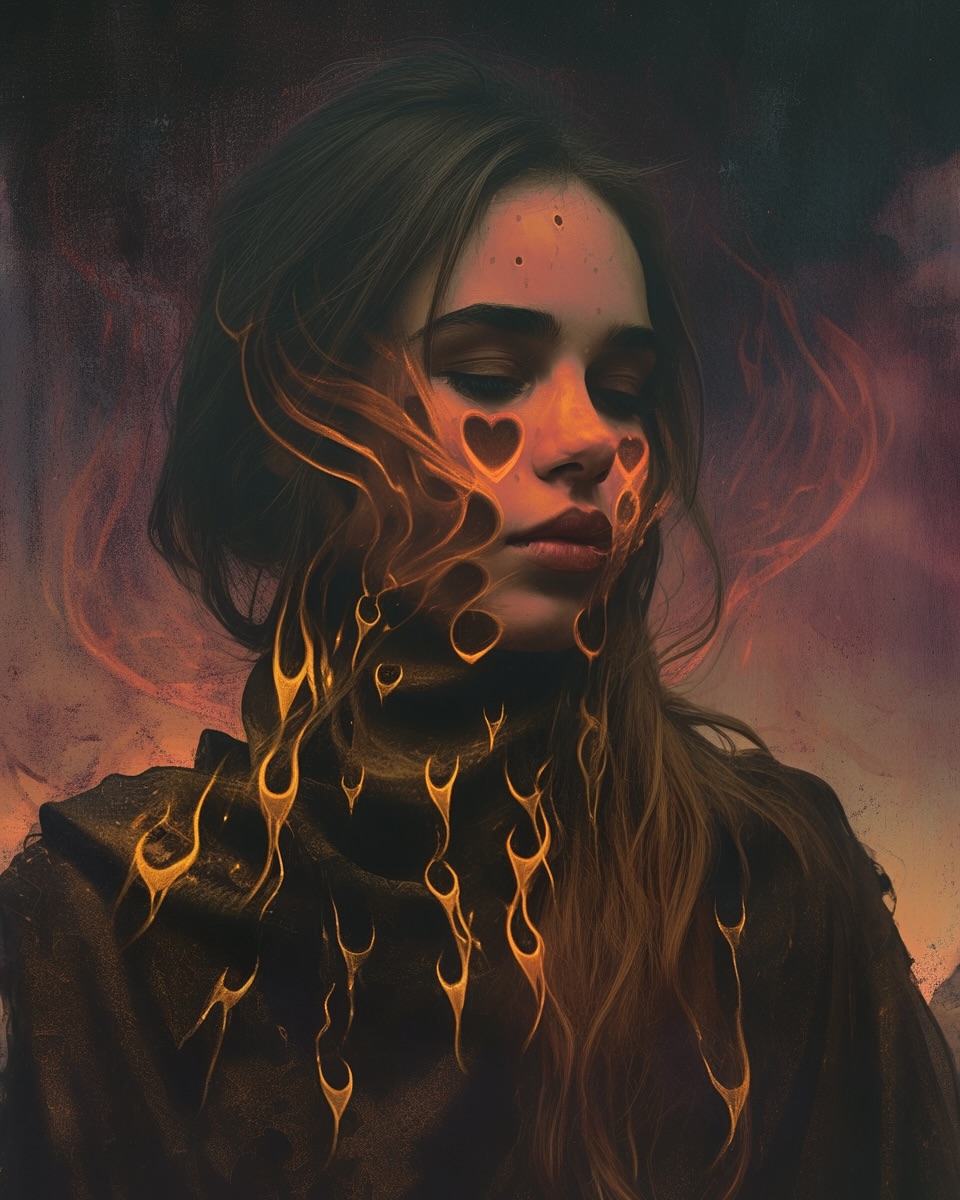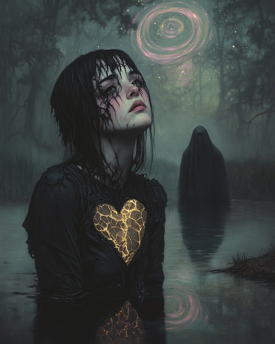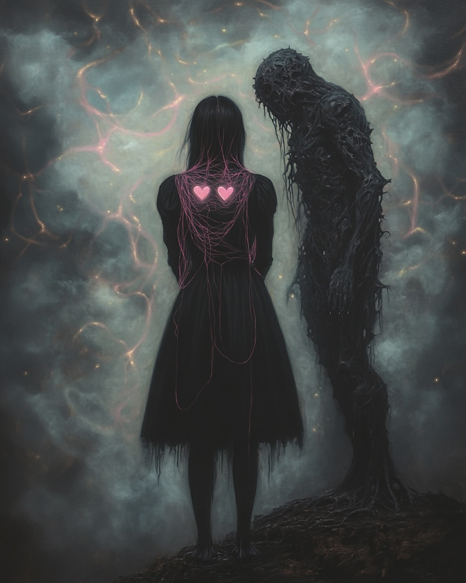 Glowing heart motifs, celestial imagery, and soft, mysterious lighting give each piece a sense of magic, like stepping into a universe where emotions manifest visually. There’s an enchanting contrast between light and shadow, warmth and melancholy, that makes the work feel immersive and emotionally resonant to me.