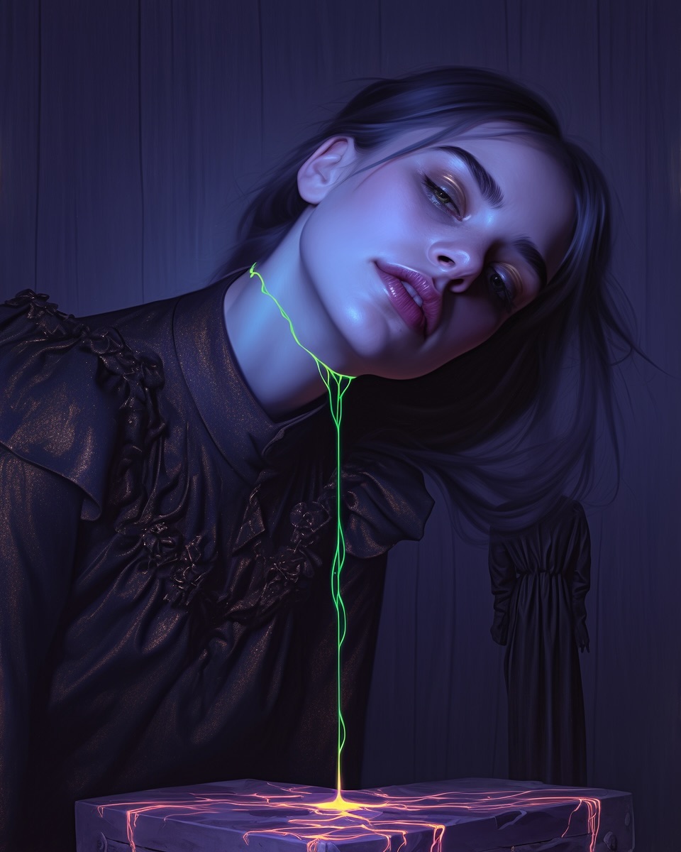 The style dances between gothic elegance, futuristic neon, and celestial mysticism, reflecting an exploration of identity, storytelling, and artistic experimentation. It’s a space where self-expression meets fantasy, and every image feels like a glimpse into a beautifully crafted dreamscape.